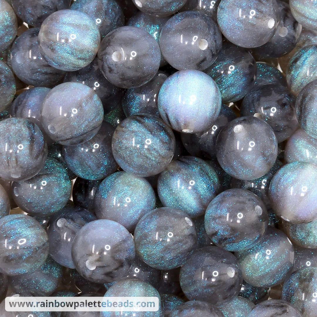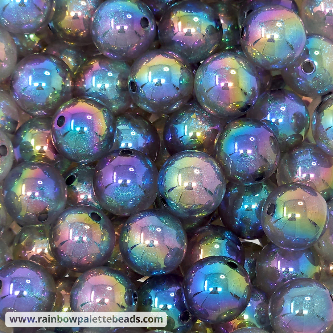 16mm AB Dark Gray Aurora Glitter Shimmer Acrylic Beads