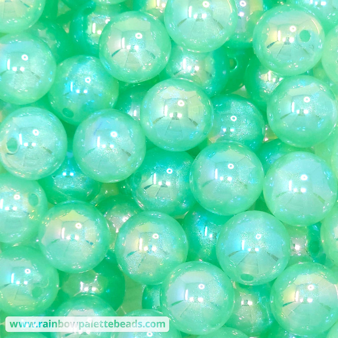 16mm AB Green Aurora Glitter Shimmer Acrylic Beads