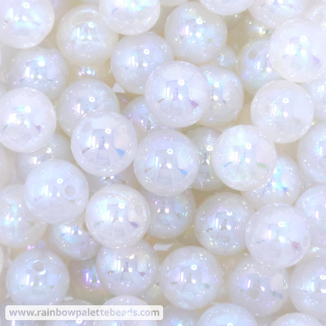 16mm AB White Aurora Glitter Shimmer Acrylic Beads
