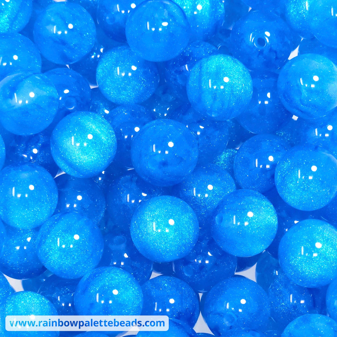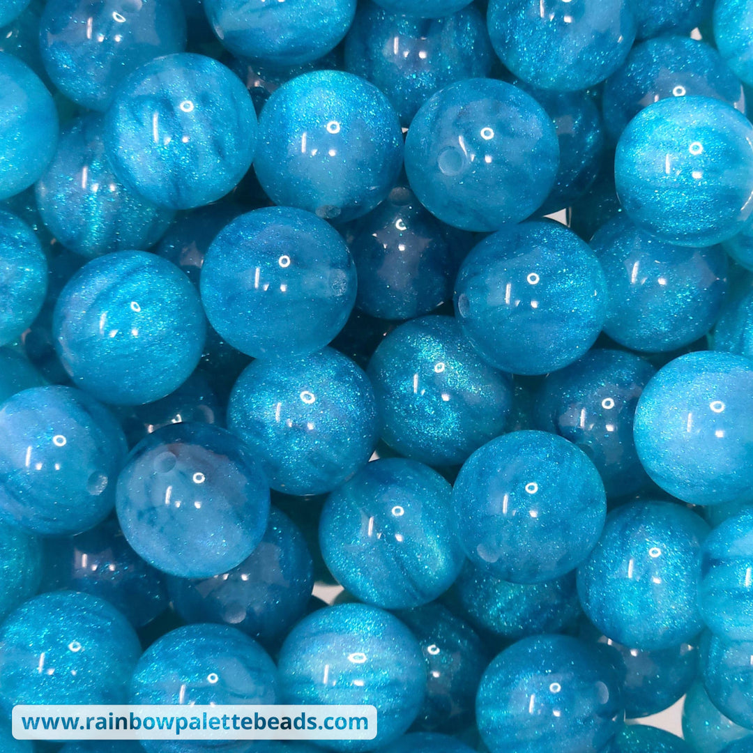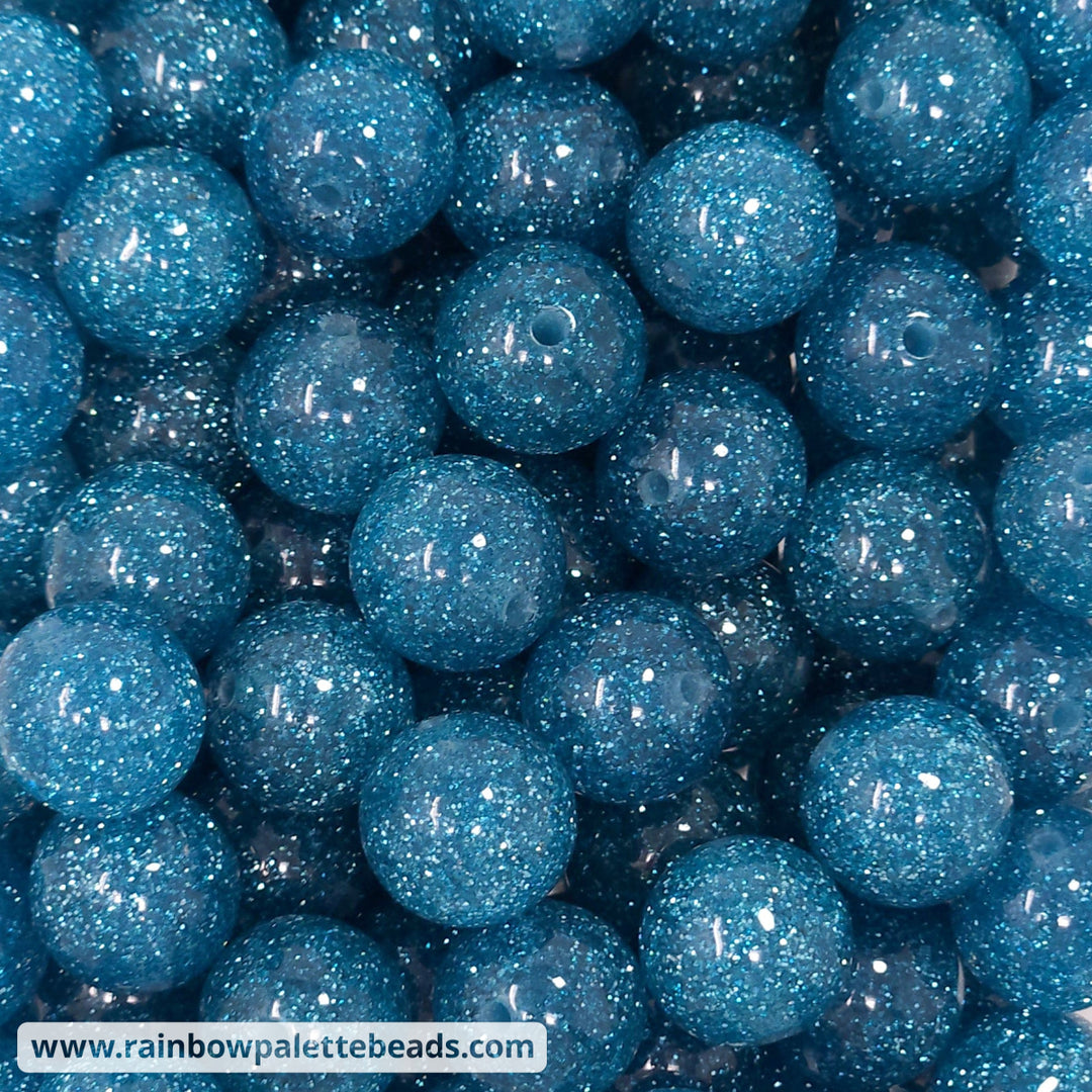 16mm Aqua Glitter Shimmer Acrylic Beads