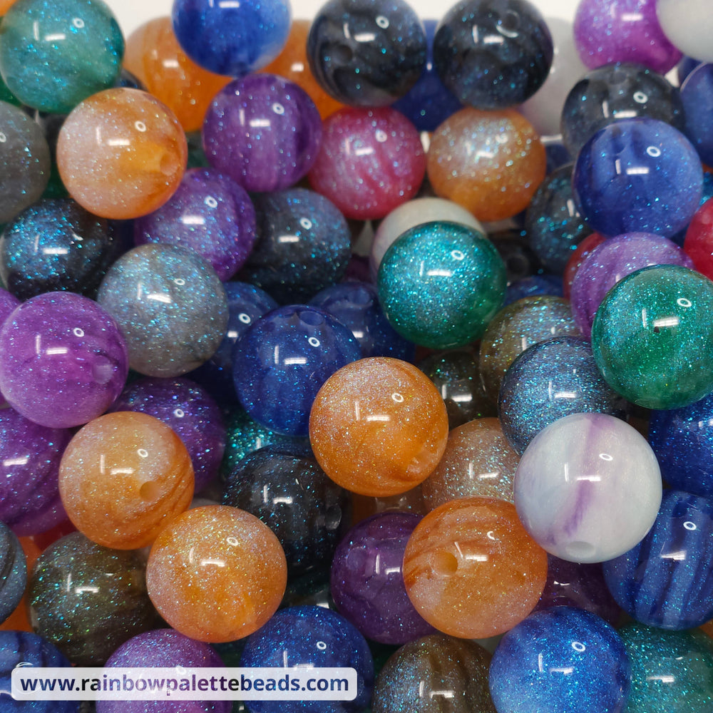 16mm Assorted Color Glitter Acrylic Bead Mix (10 beads)