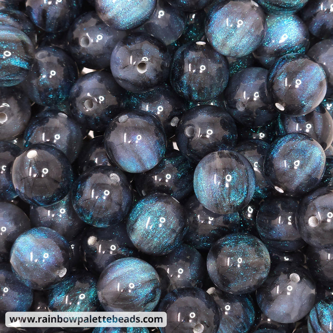 16mm UV/AB Starry Night Black Glitter Core Acrylic Beads