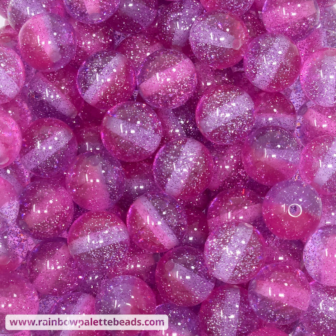 16mm Pink/Purple Duos Glitter Acrylic Beads