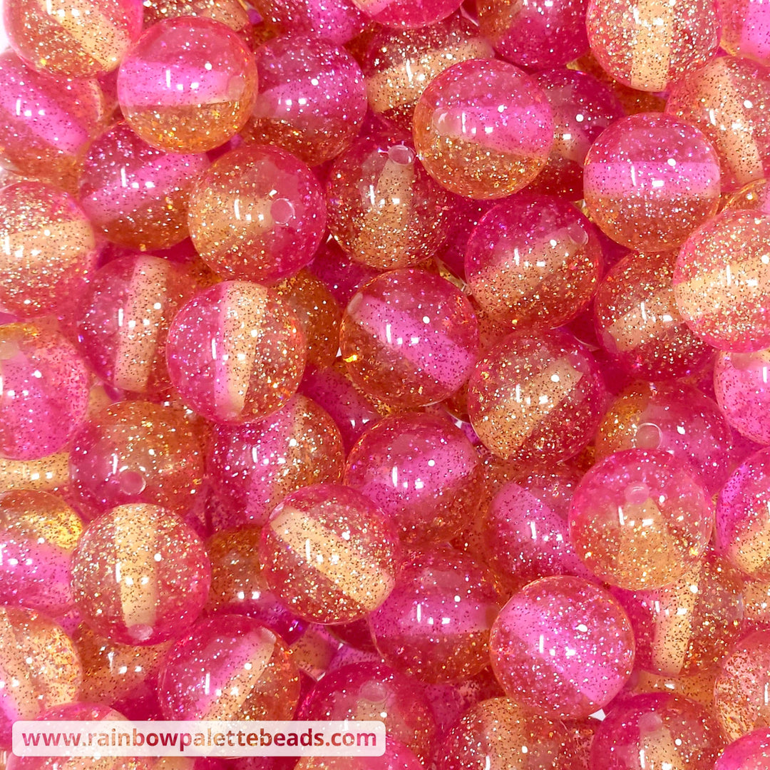 16mm Pink/Green Duos Glitter Acrylic Beads