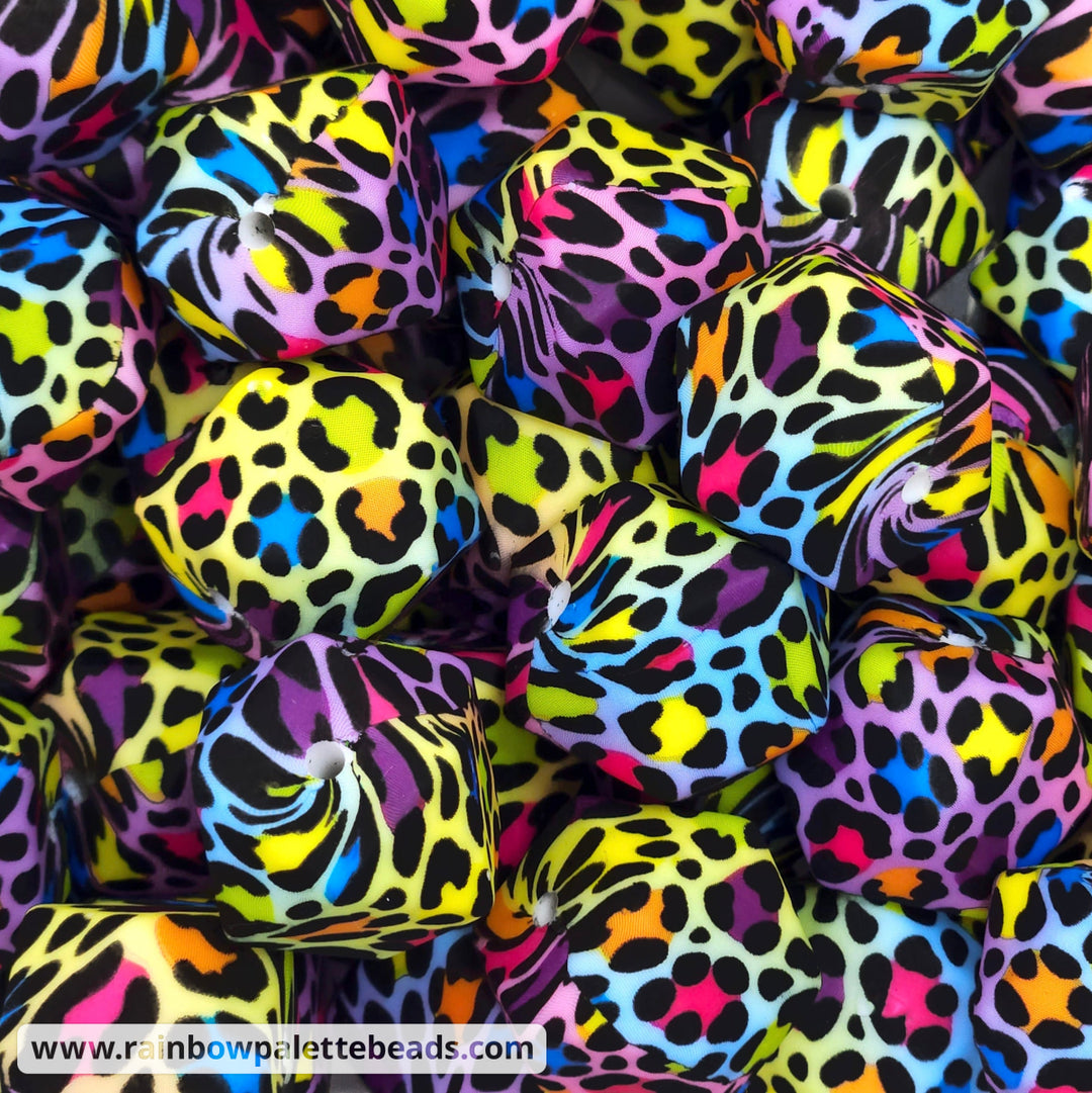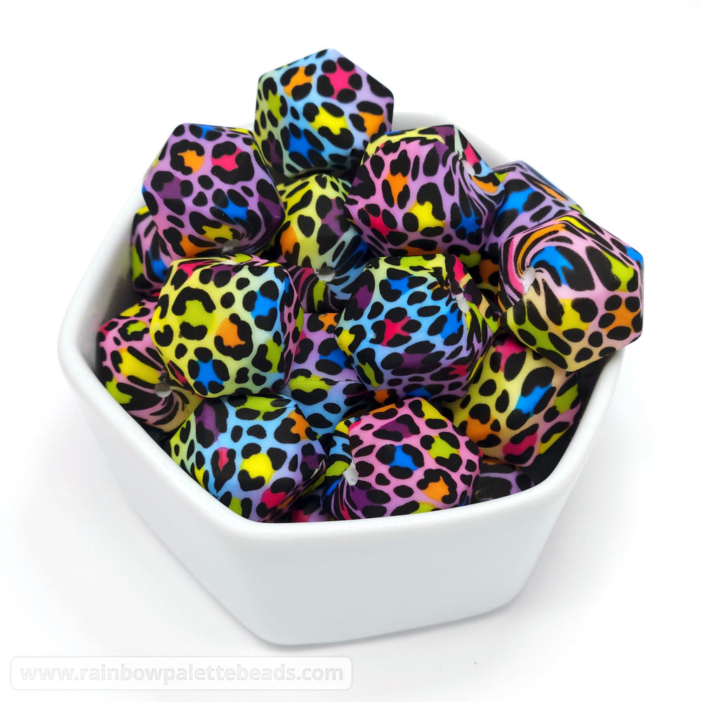 17mm Rainbow Gradient Leopard Print Silicone Hex Beads