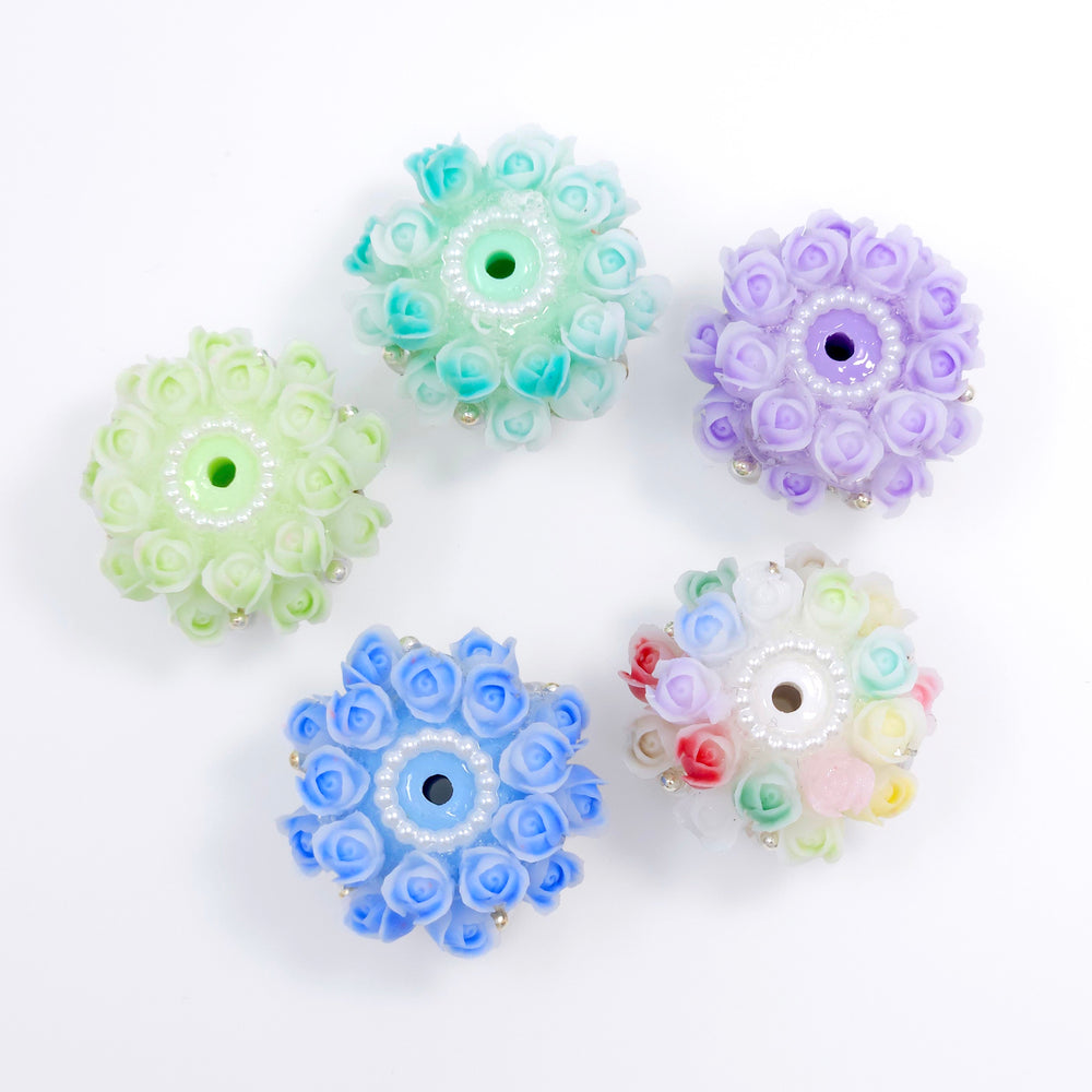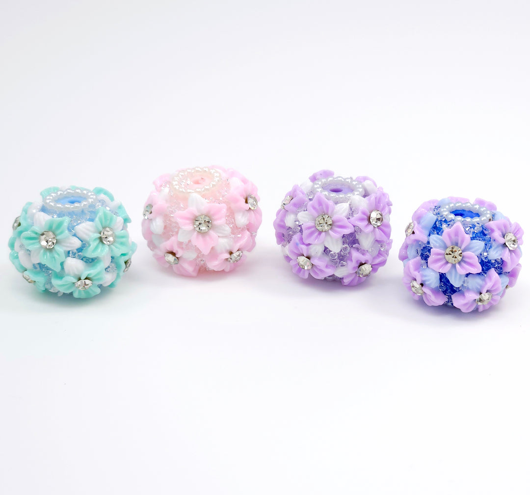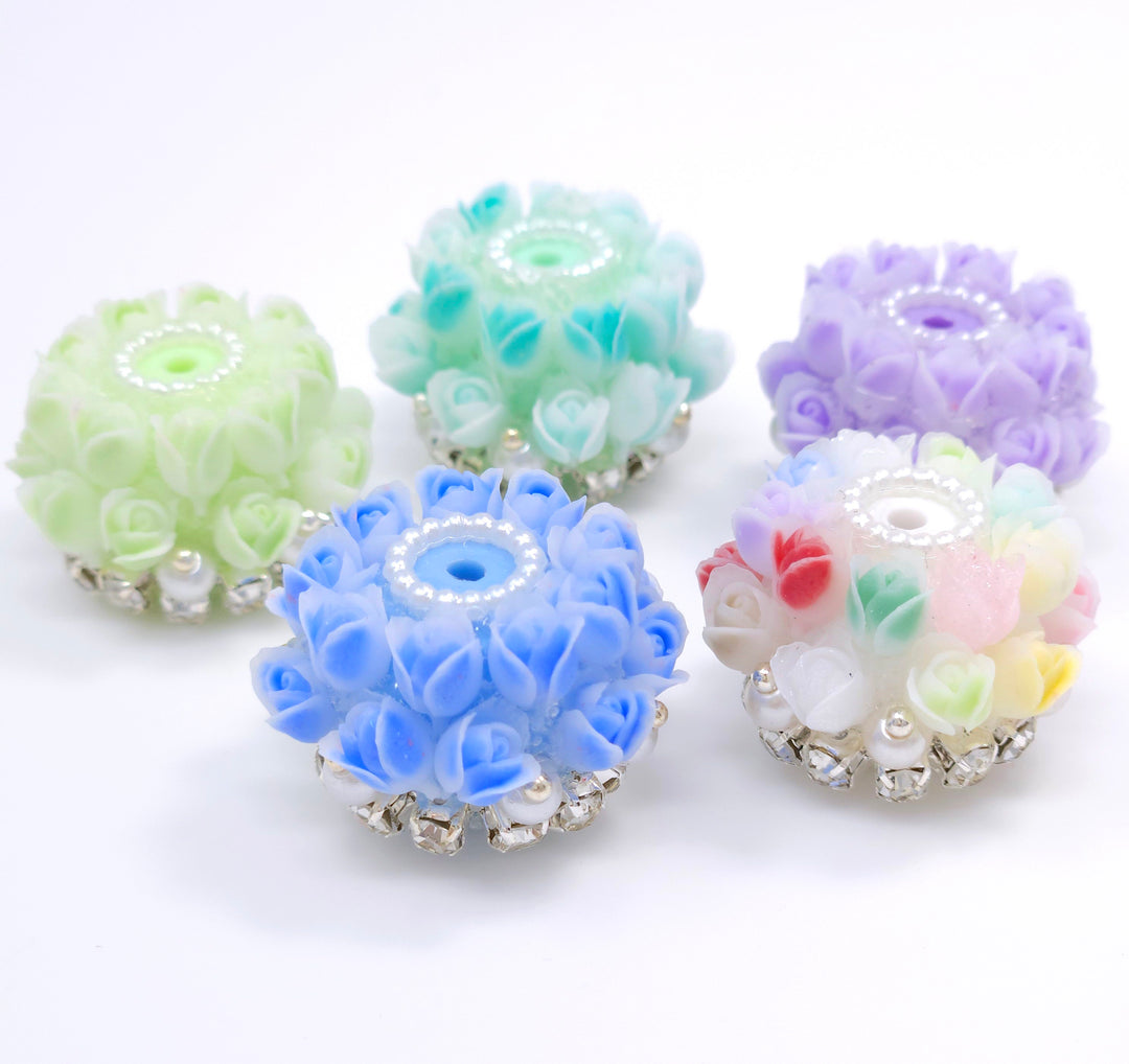 20mm Assorted Color Diamond Flower & Pearl Sugar Acrylic Rondelle Spacer Beads