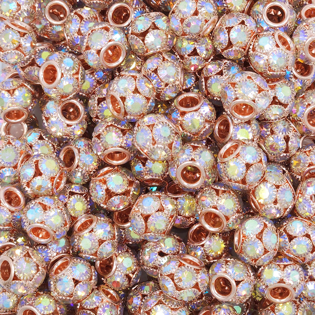 14mm Rose Gold Iridescent Inlaid Rhinestone Metal Spacer Beads