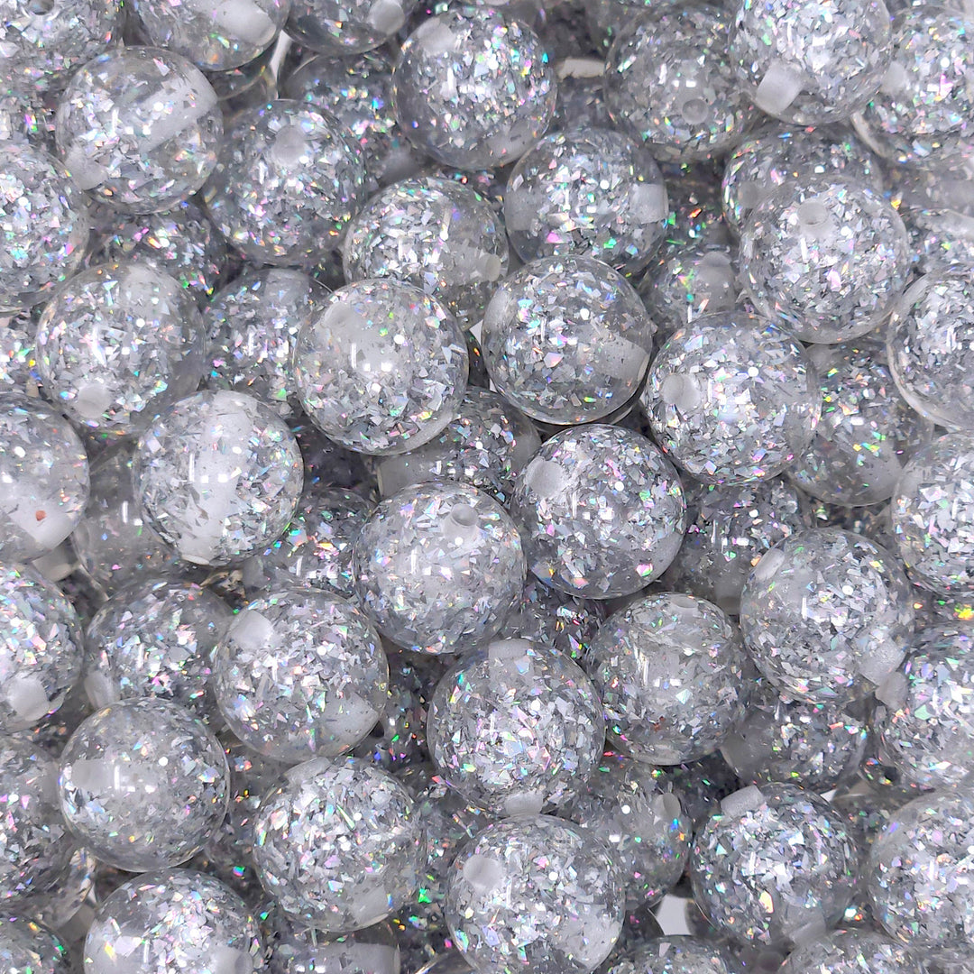 16mm Silver Chunky Holographic Glitter Confetti Acrylic Beads