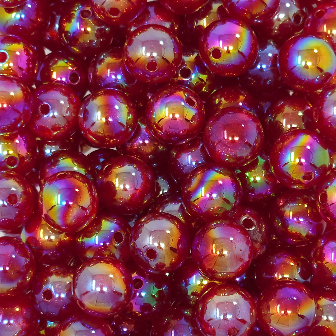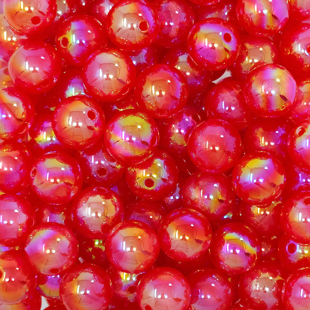 16mm AB Red Aurora Shimmer Glitter Acrylic Beads