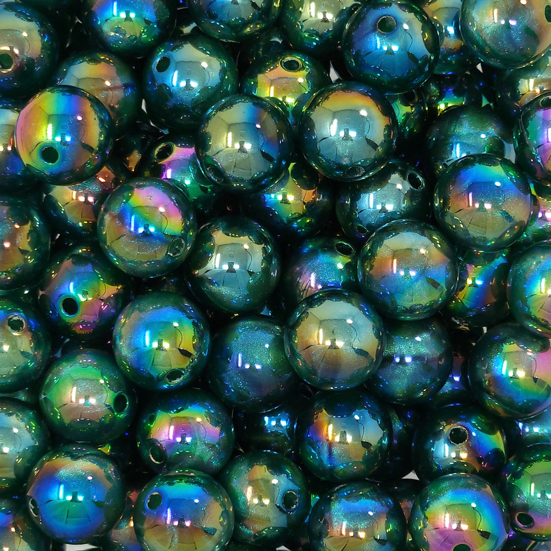 16mm AB Forest Green Aurora Glitter Shimmer Acrylic Beads