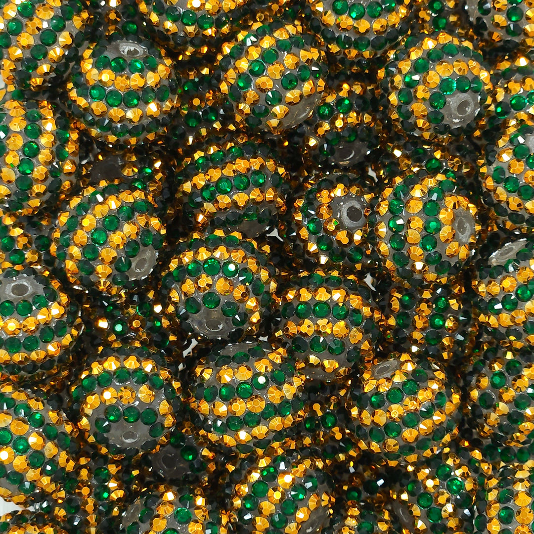 20mm Green/Gold Stud Stripe Rhinestone Beads
