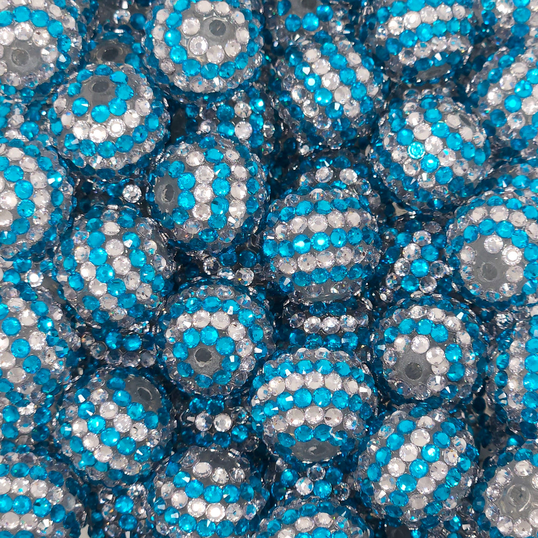 20mm Cyan/Silver Crystal Stripe Rhinestone Beads