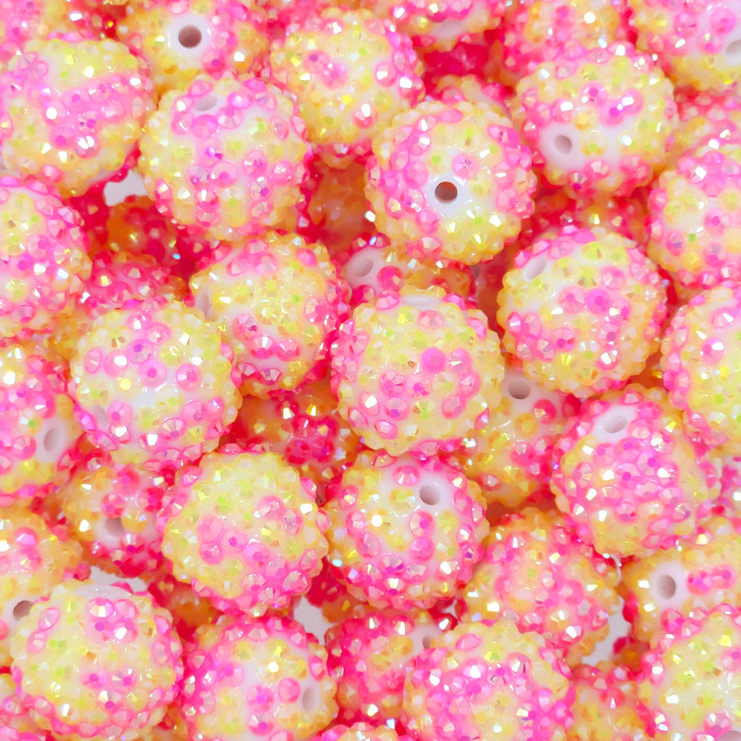 20mm AB Pink Lemonade Confetti Rhinestone Beads