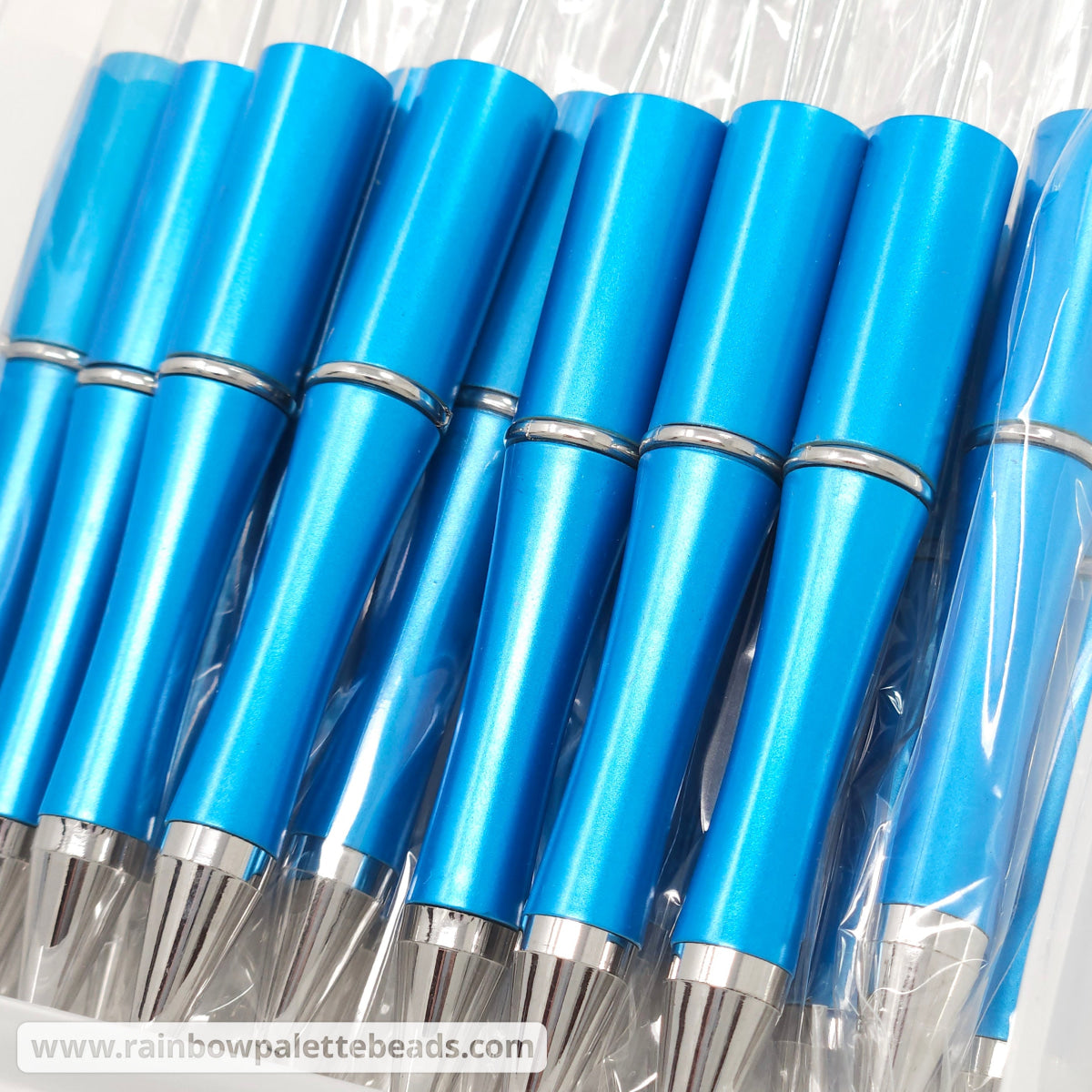 Cyan Blue Pearlescent Beadable Plastic Pen