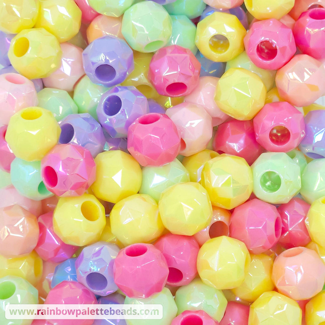 15mm AB Pastel Assorted Color Faceted Acrylic Beads (10 beads)