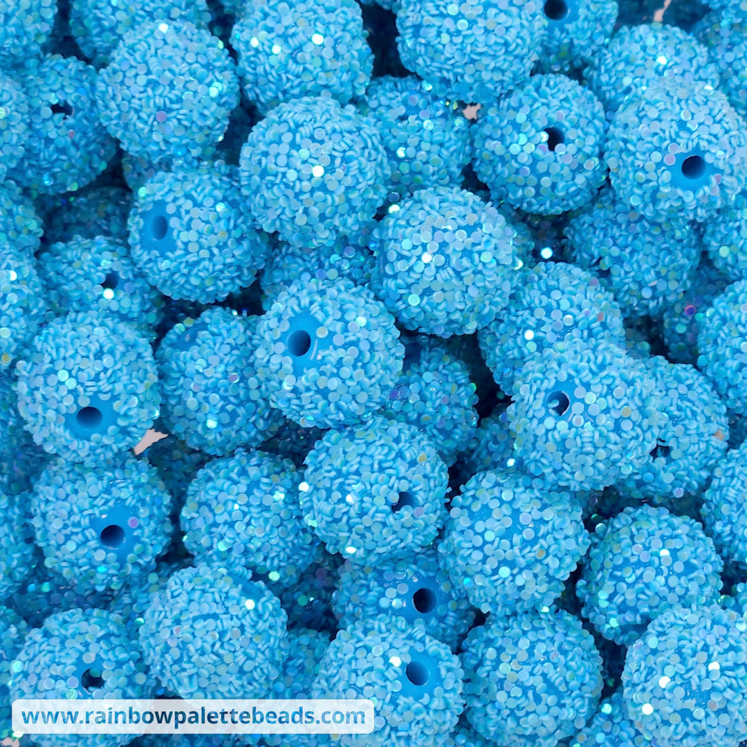16mm Cyan Blue Chunky Glitter Acrylic Beads
