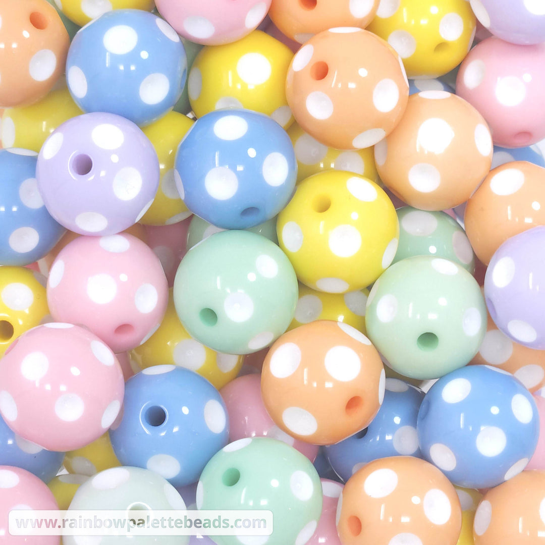 20mm Pastels Assorted Color Polka Dot Acrylic Bead Mix (10 beads)