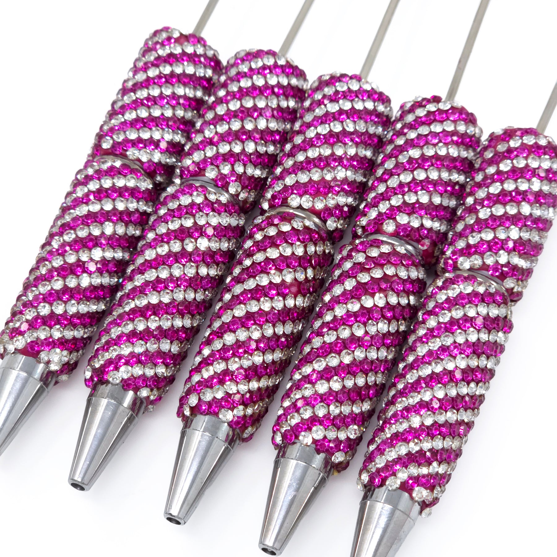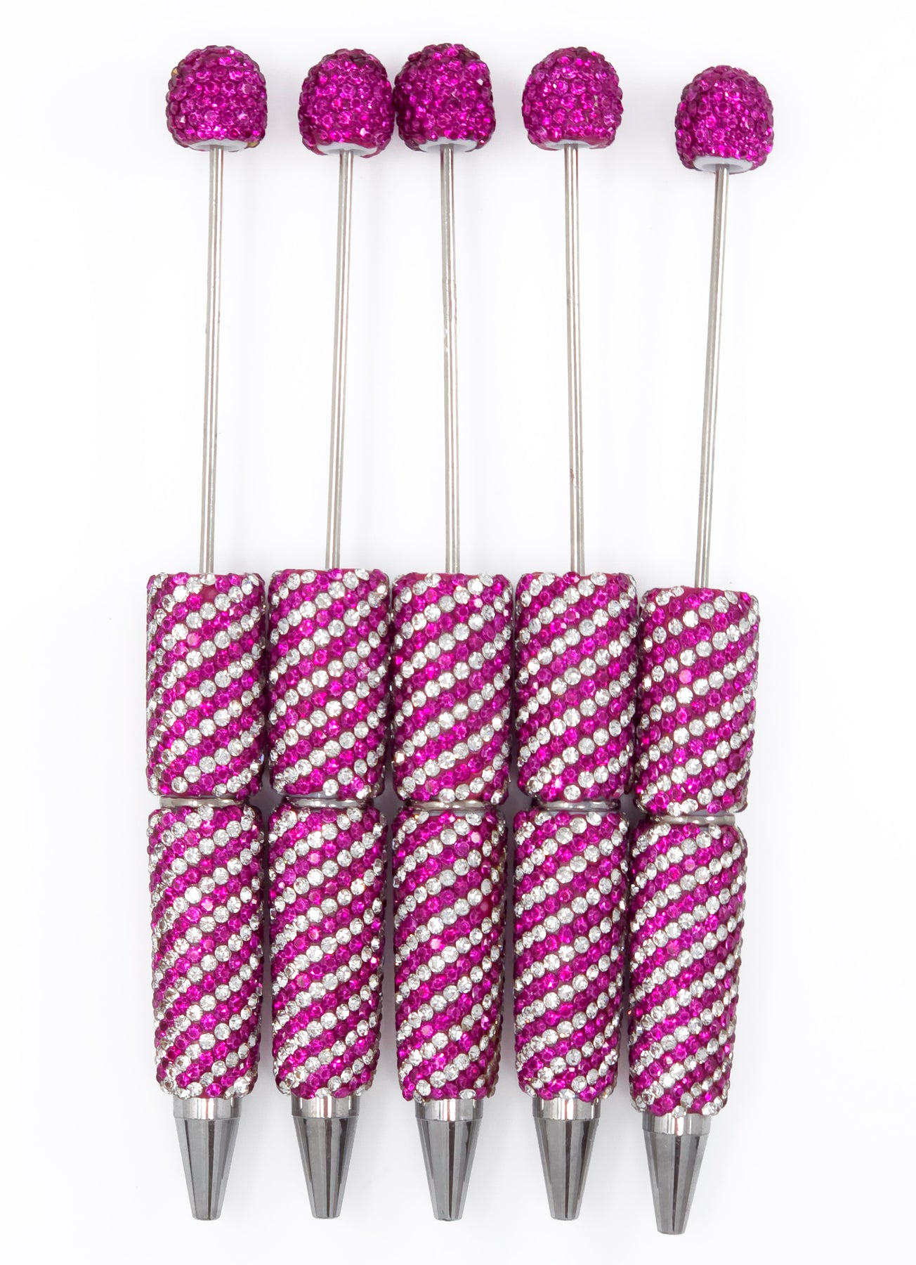Magenta Diagonal Stripe Full Rhinestone Beadable Diamond Pen