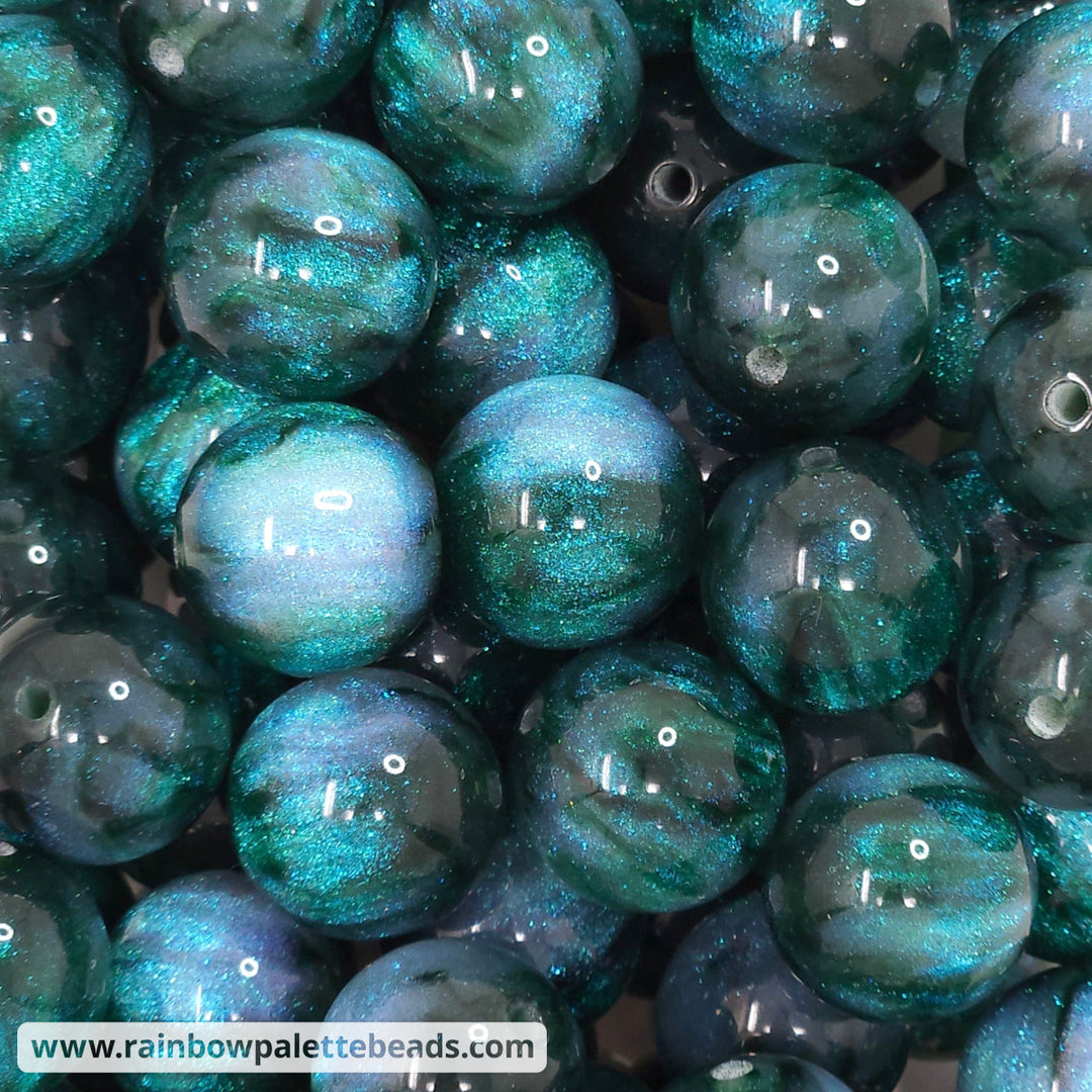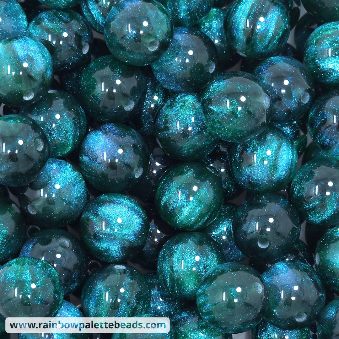 16mm Deep Jungle Green Glitter Shimmer Acrylic Beads
