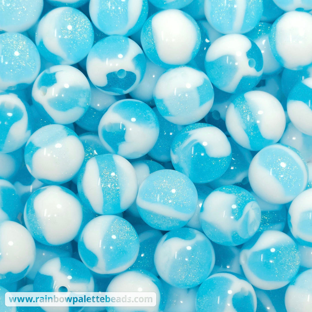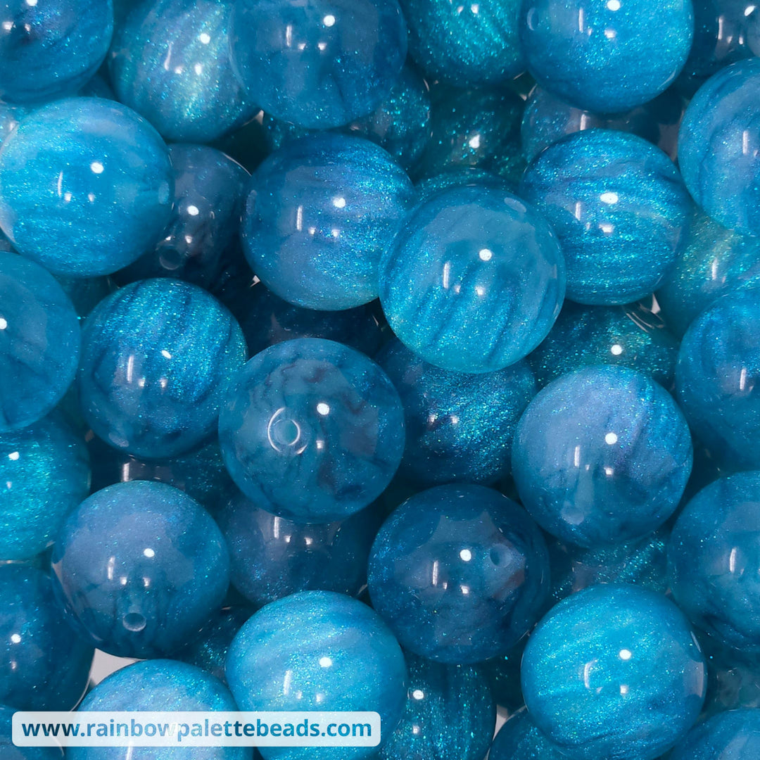 20mm Aqua Blue Glitter Shimmer Acrylic Beads