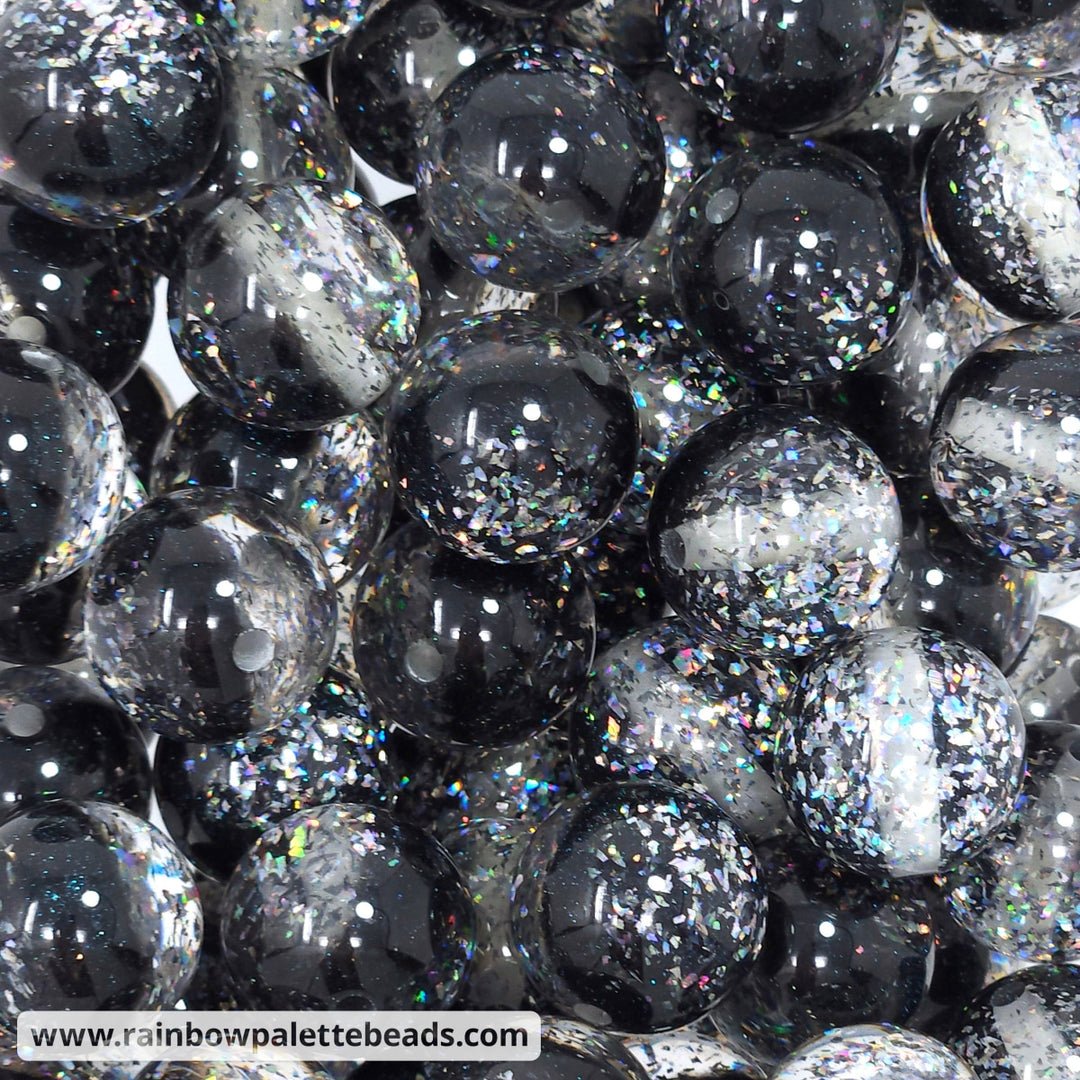 16mm Black Holographic Surprise Party Glitter Acrylic Beads