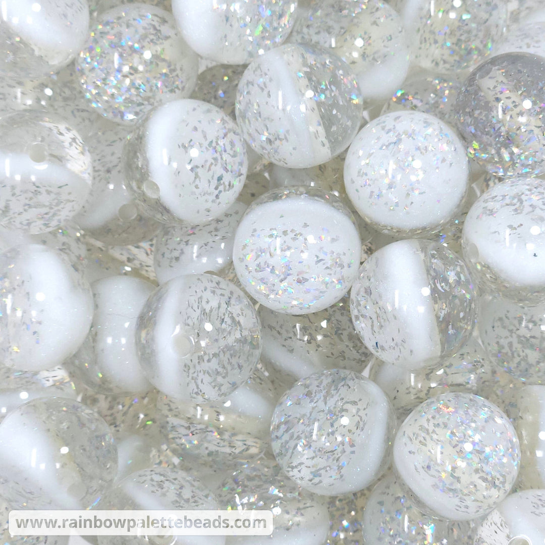 20mm White Iridescent Party Glitter Acrylic Beads