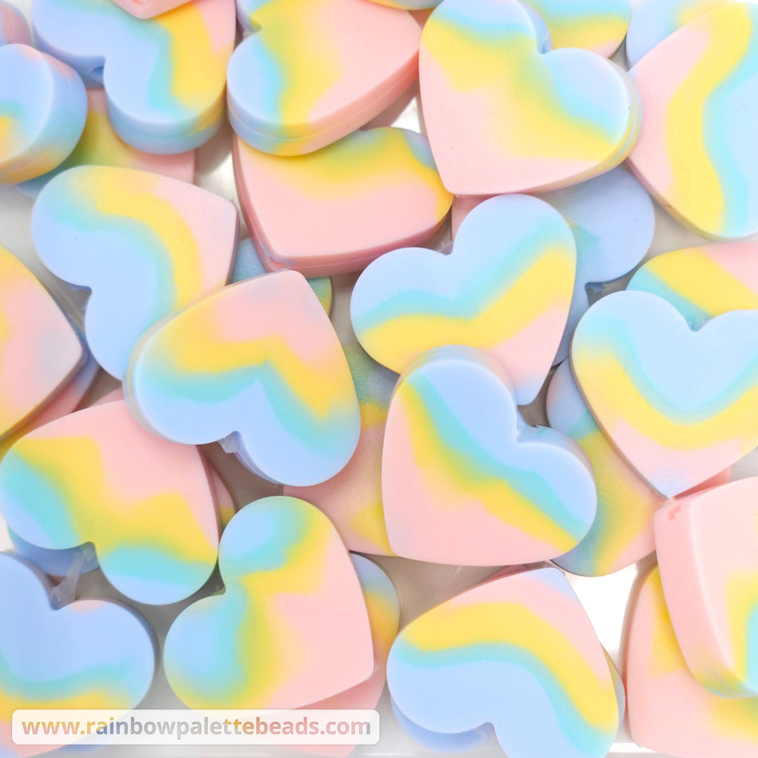 25mm Pastel Rainbow Marble Silicone Heart Focal Beads