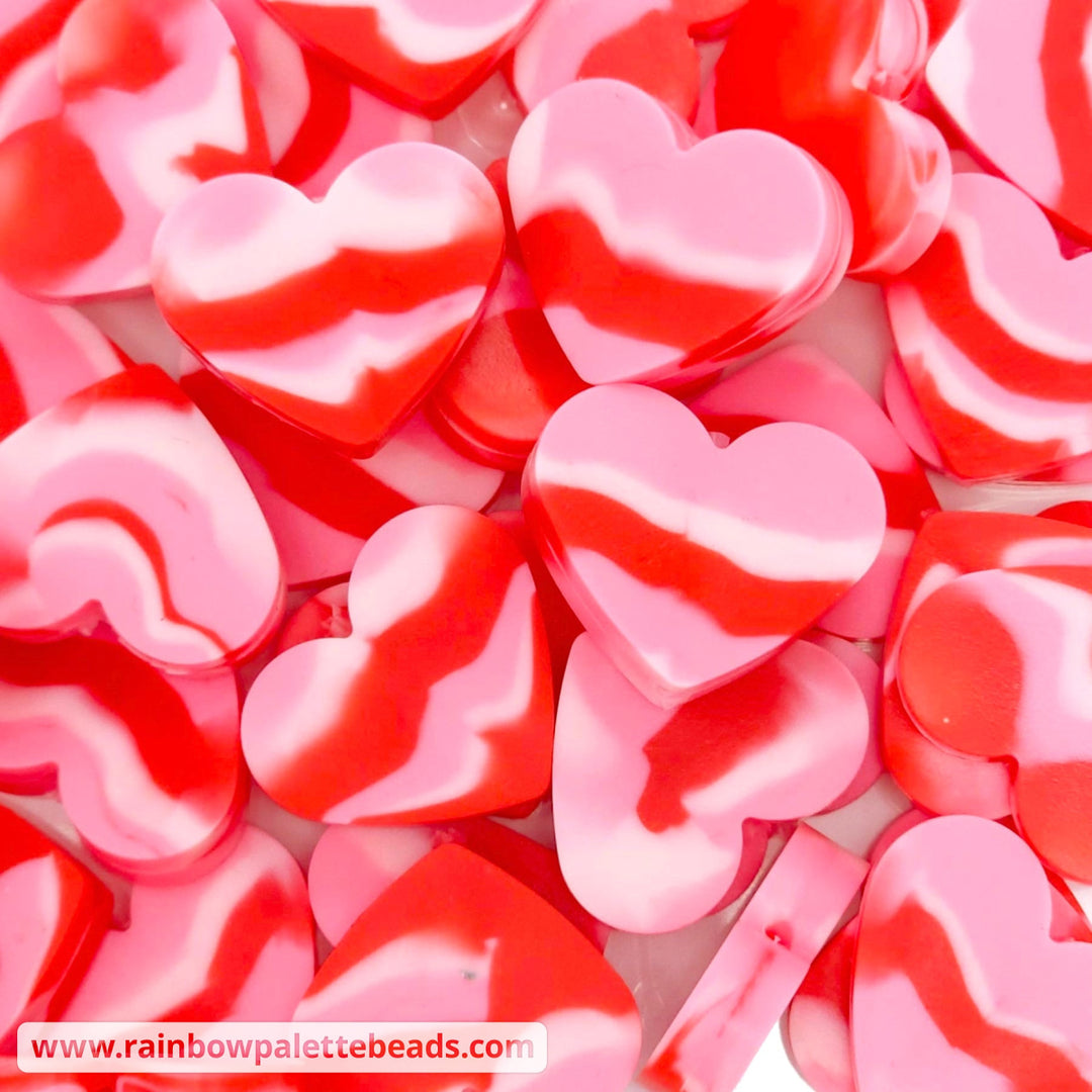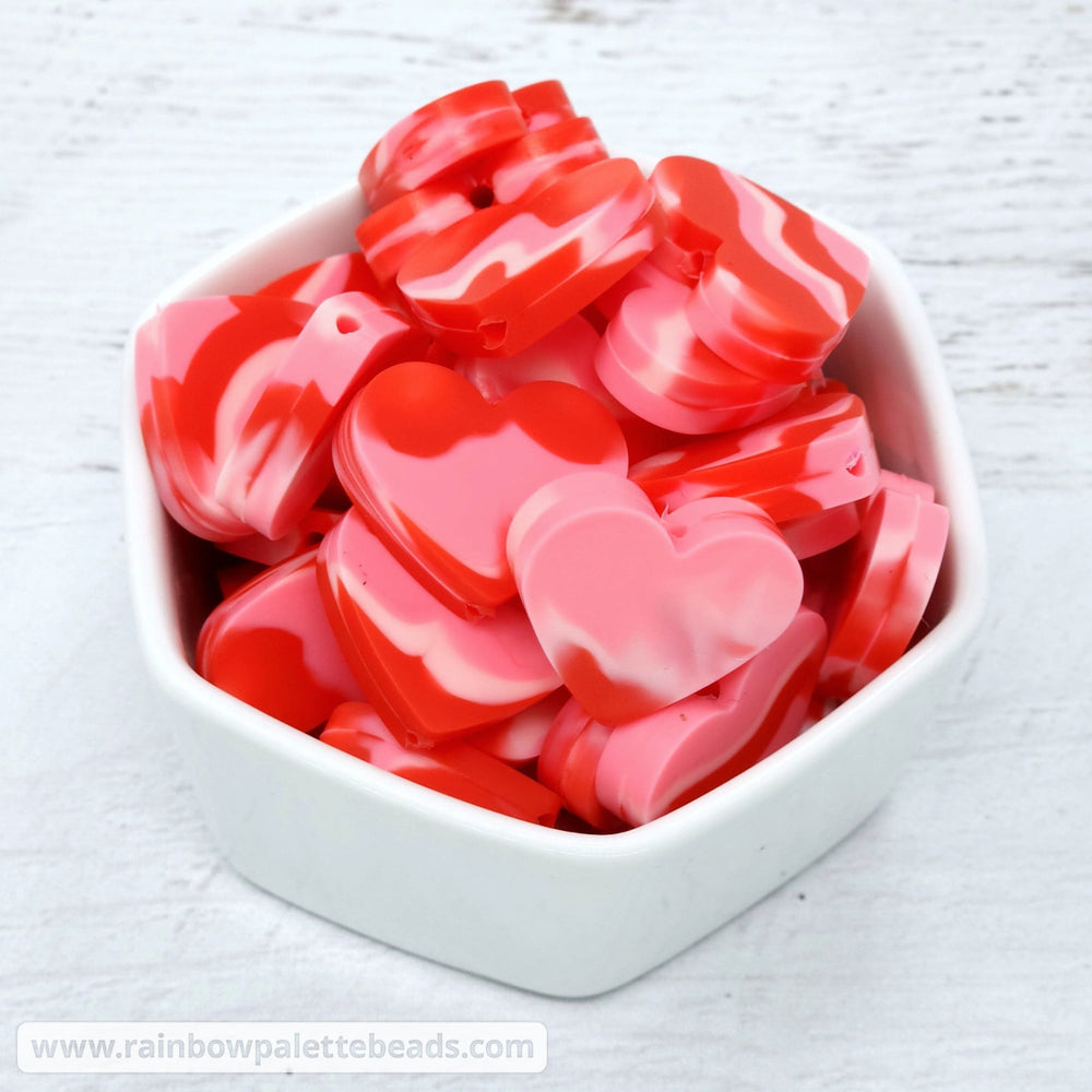 25mm Pink/Red Marble Silicone Heart Focal Beads