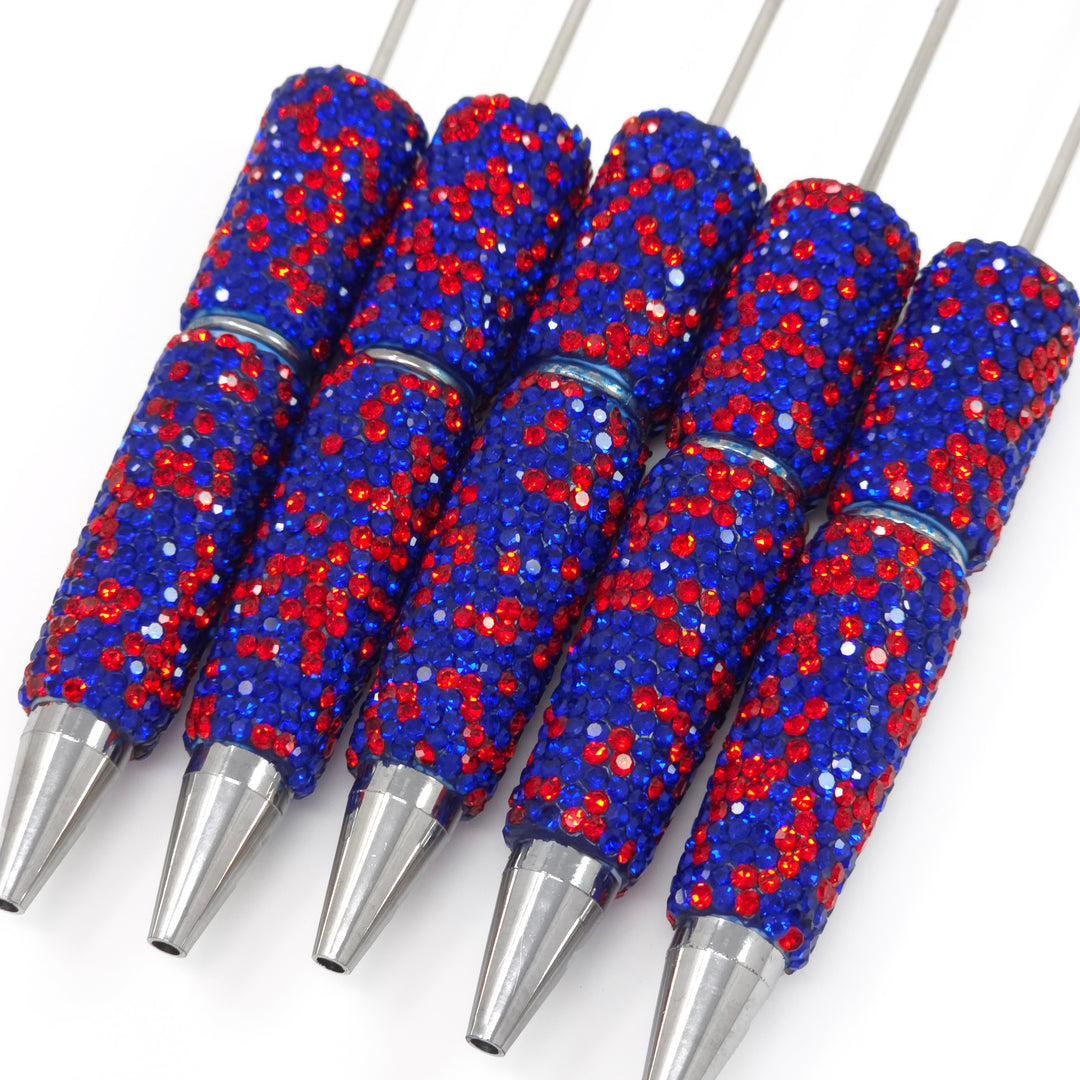 Royal Blue & Red Confetti Crystal Full Rhinestone Beadable Diamond Pen
