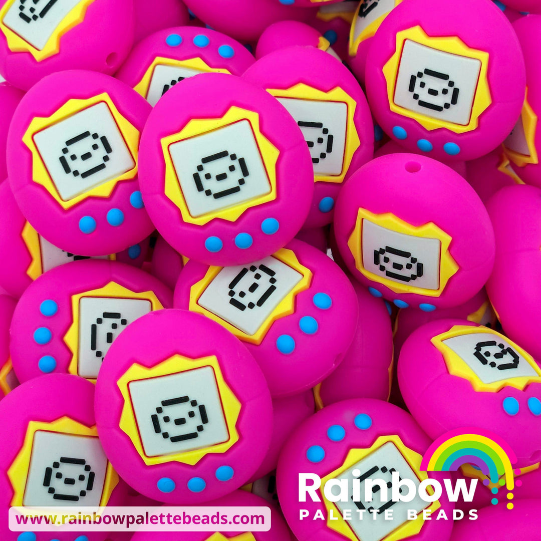 15mm Glossy Snowflake Print Pink Silicone Beads