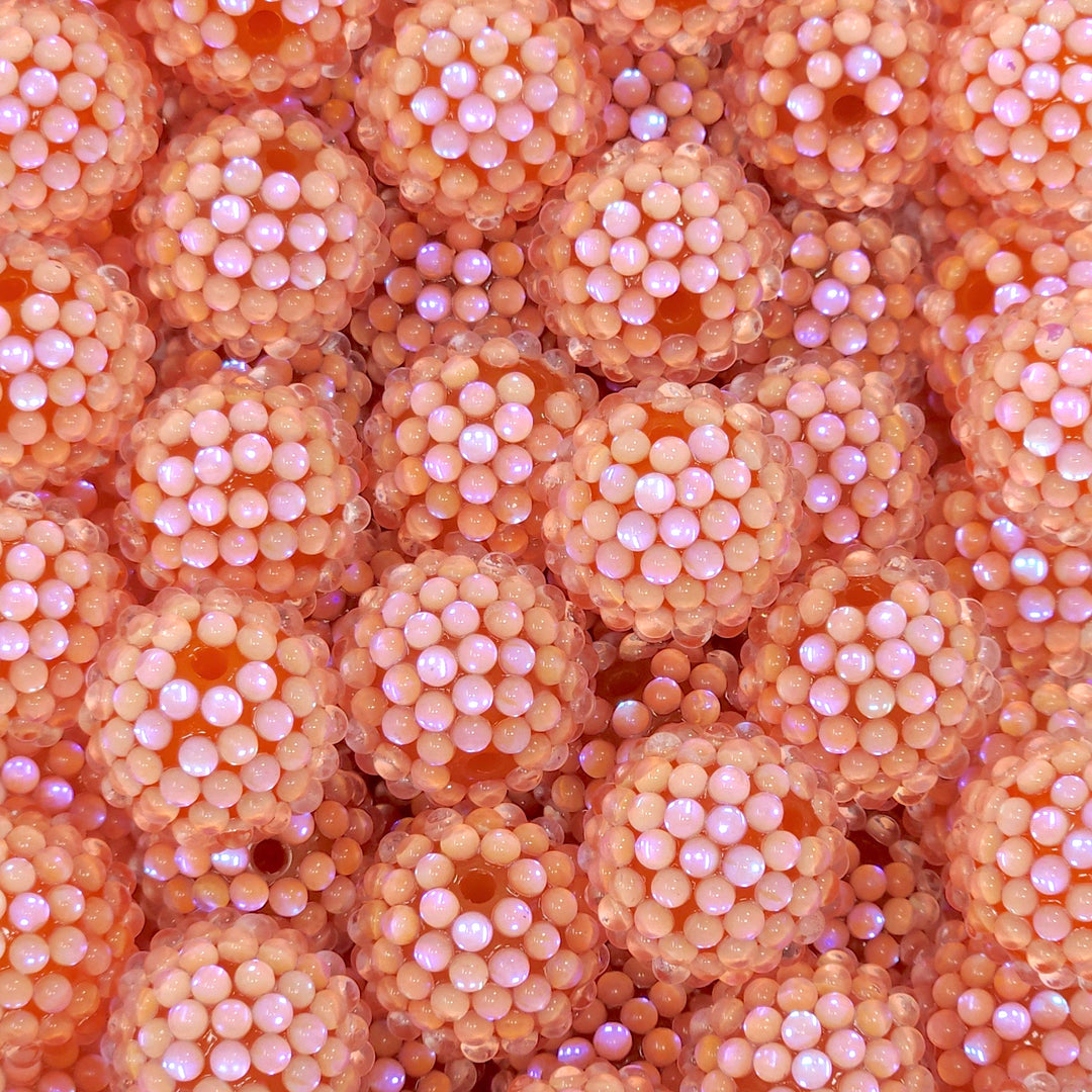 20mm Coral Orange Iridescent Illusion Berry Rhinestone Acrylic Beads