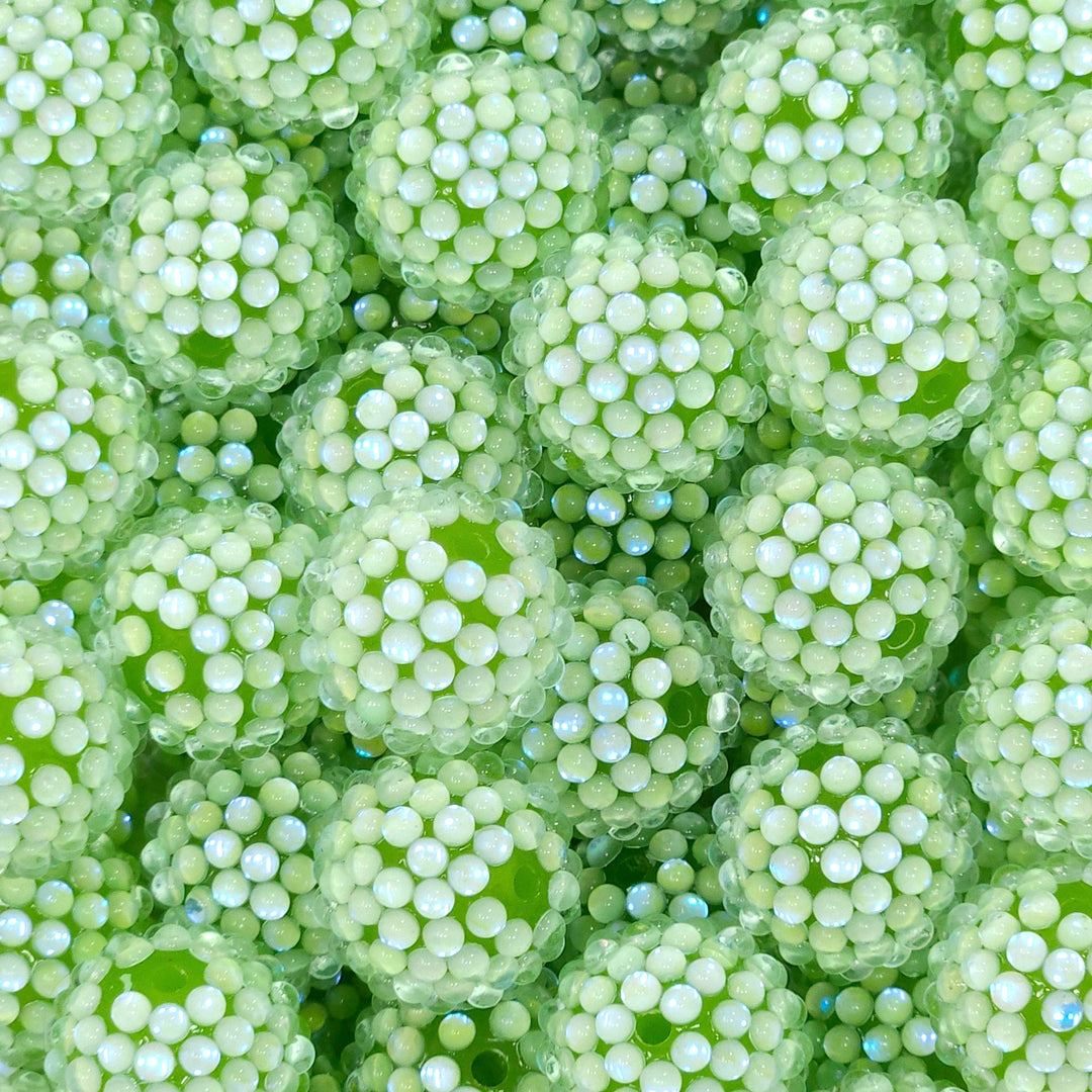 20mm Light Green Iridescent Illusion Berry Rhinestone Acrylic Beads