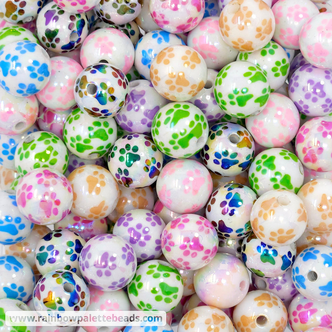 16mm AB Assorted Color Paw Print Acrylic Bead Mix (10 beads)
