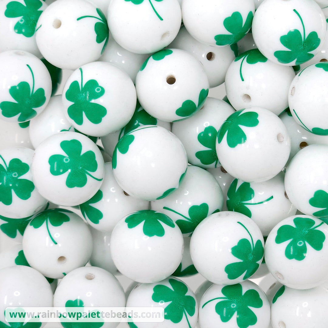 12mm Clover/Shamrock Print Acrylic Pearl Beads