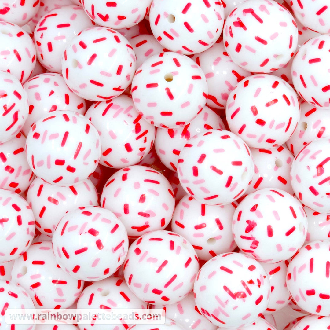 20mm Red/Pink Sprinkle Printed Acrylic Beads