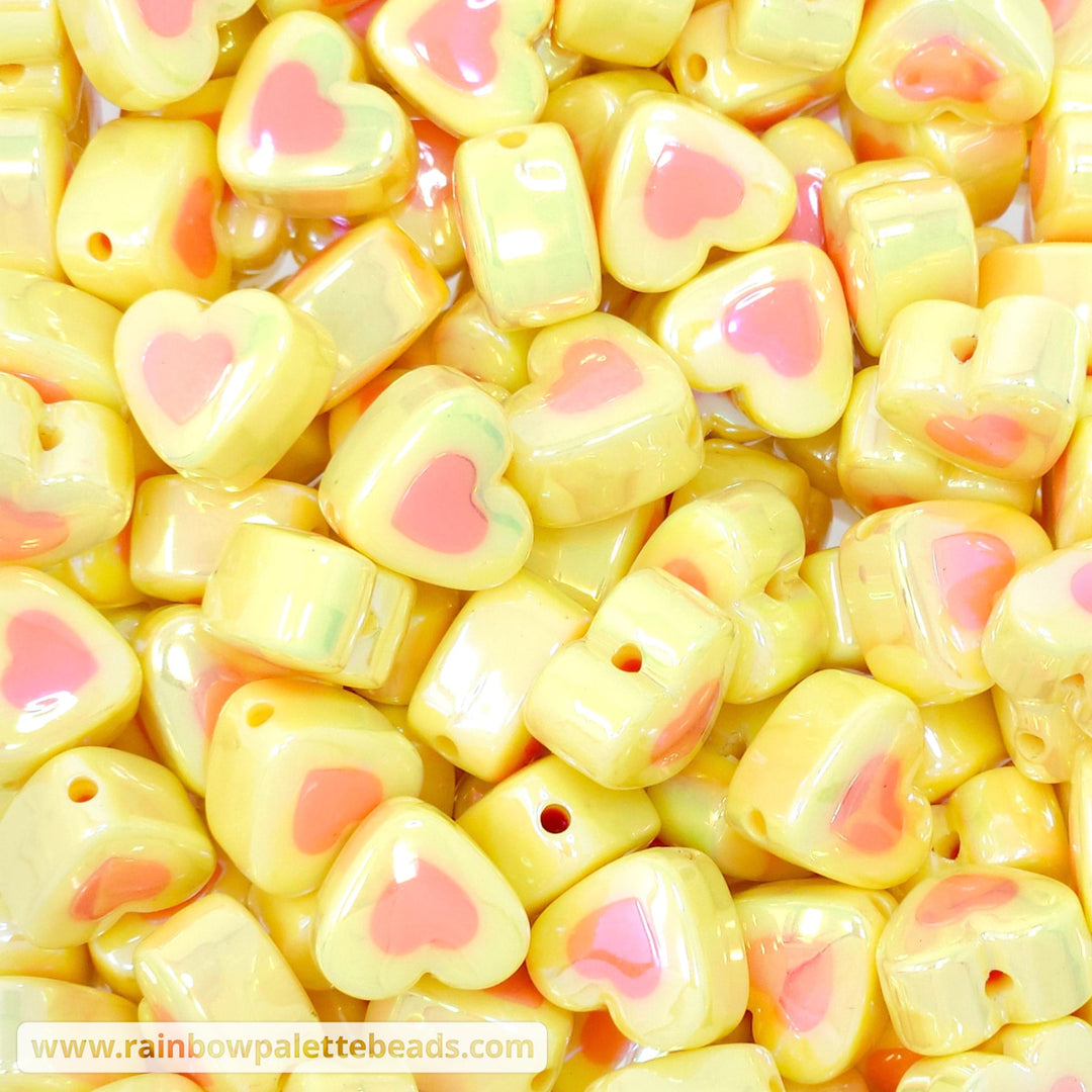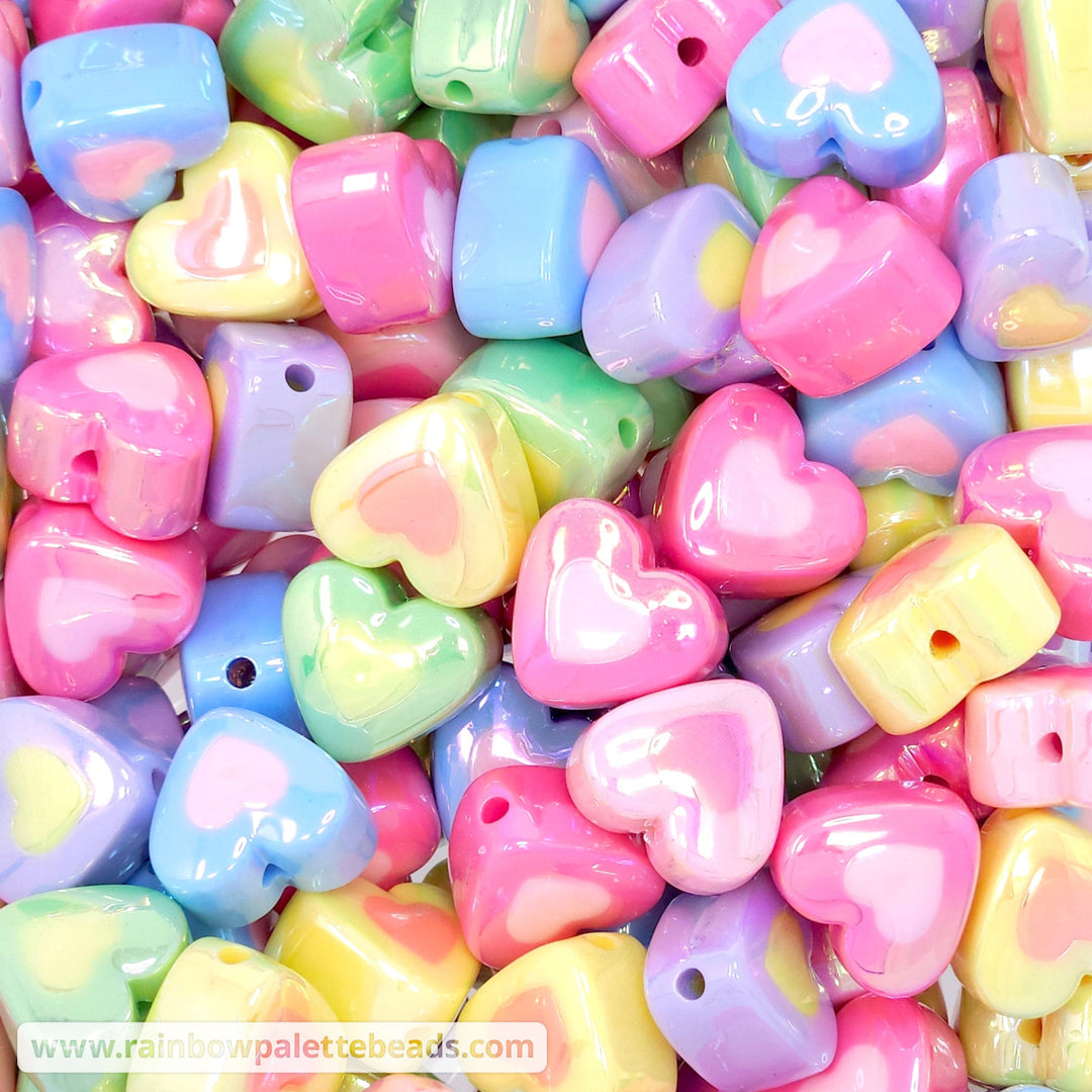 19mm Assorted Pastel Colors AB Faceted Heart Acrylic Bead Mix (10 beads)