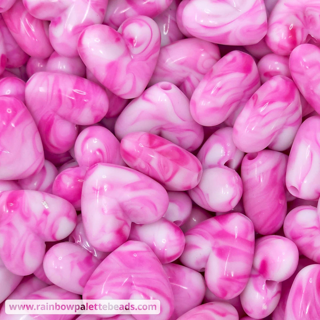 27mm Hot Pink Pearl Heart Acrylic Beads