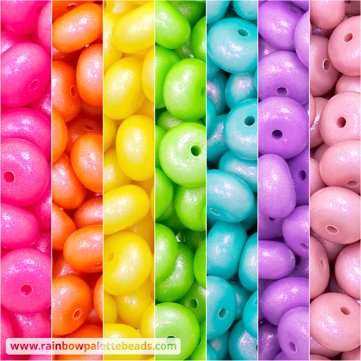 Price is for a bag of 35 beads containing 5 of each color: bright pink, orange, yellow, lime, turquoise, lavender, dusty rose.