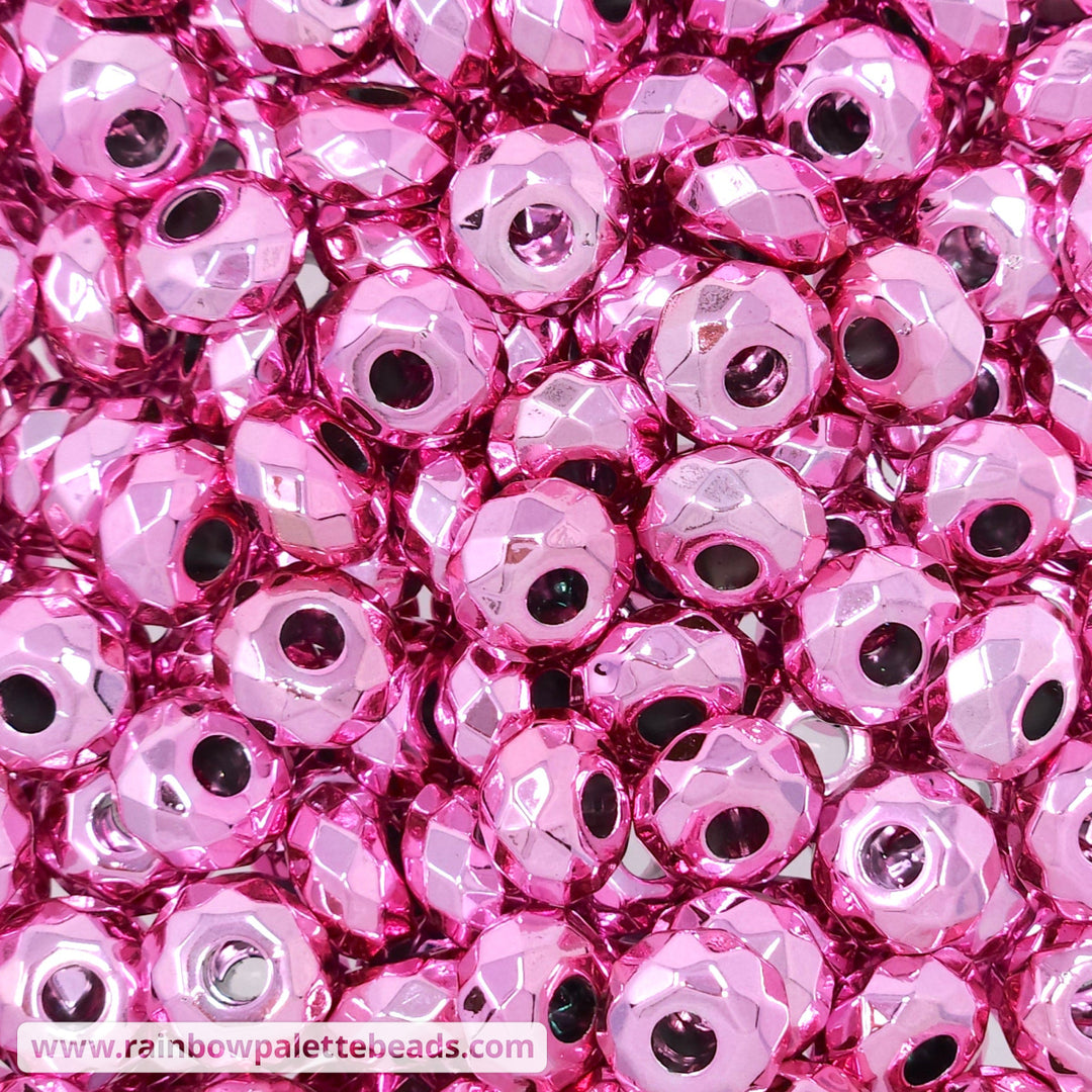 15mm Metallic Pink Faceted Acrylic Abacus Spacer Beads (10 beads)