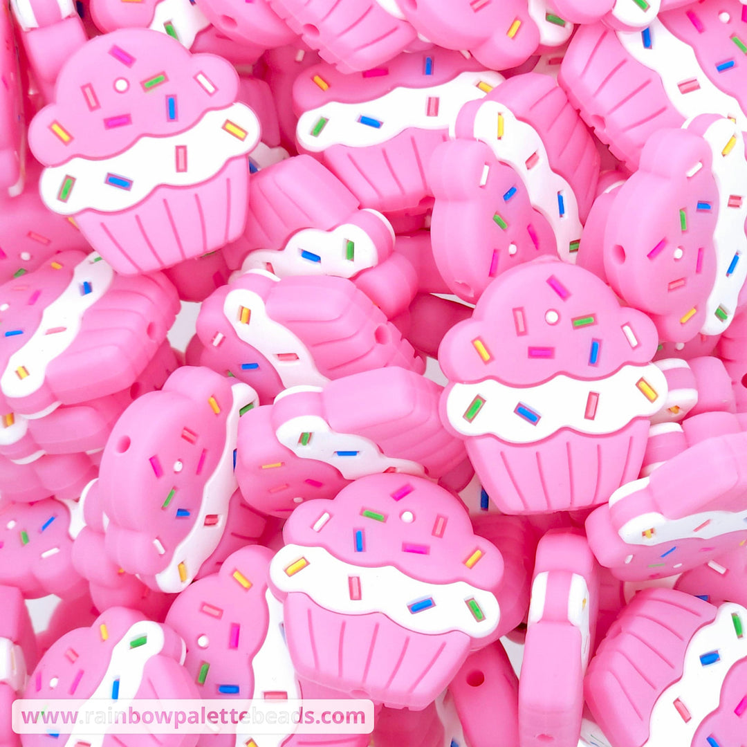 14mm Exclusive Pink Princess Confetti Silicone Glitter Shimmer Pearl Abacus Beads (5 beads)