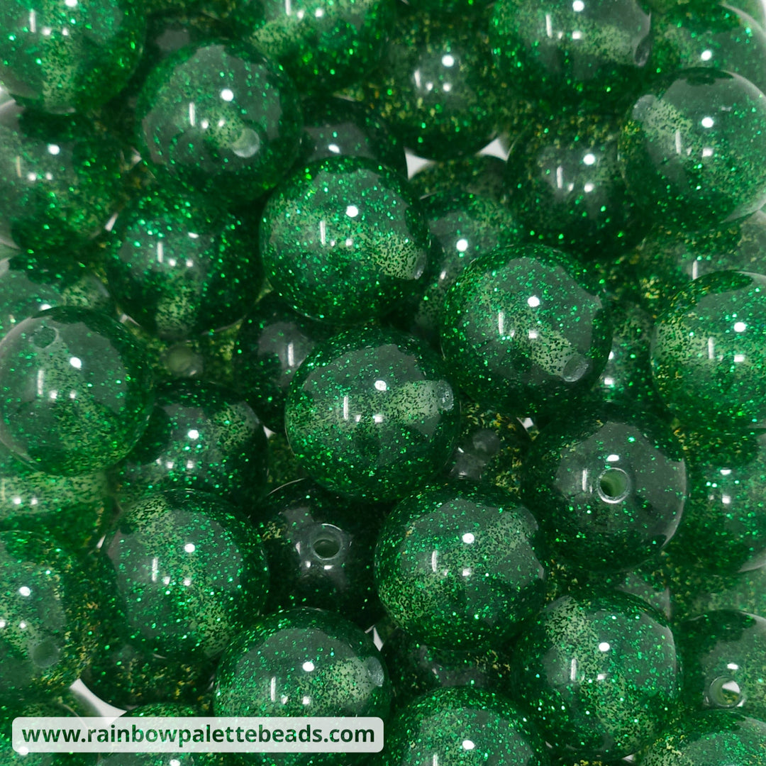 16mm UV/AB Kelly Green Glitter Shimmer Acrylic Beads