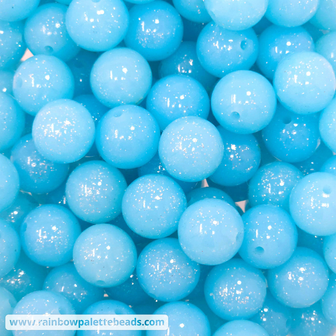 15mm Glossy Day Blue Opaque Glitter Jelly Silicone Bead Beads