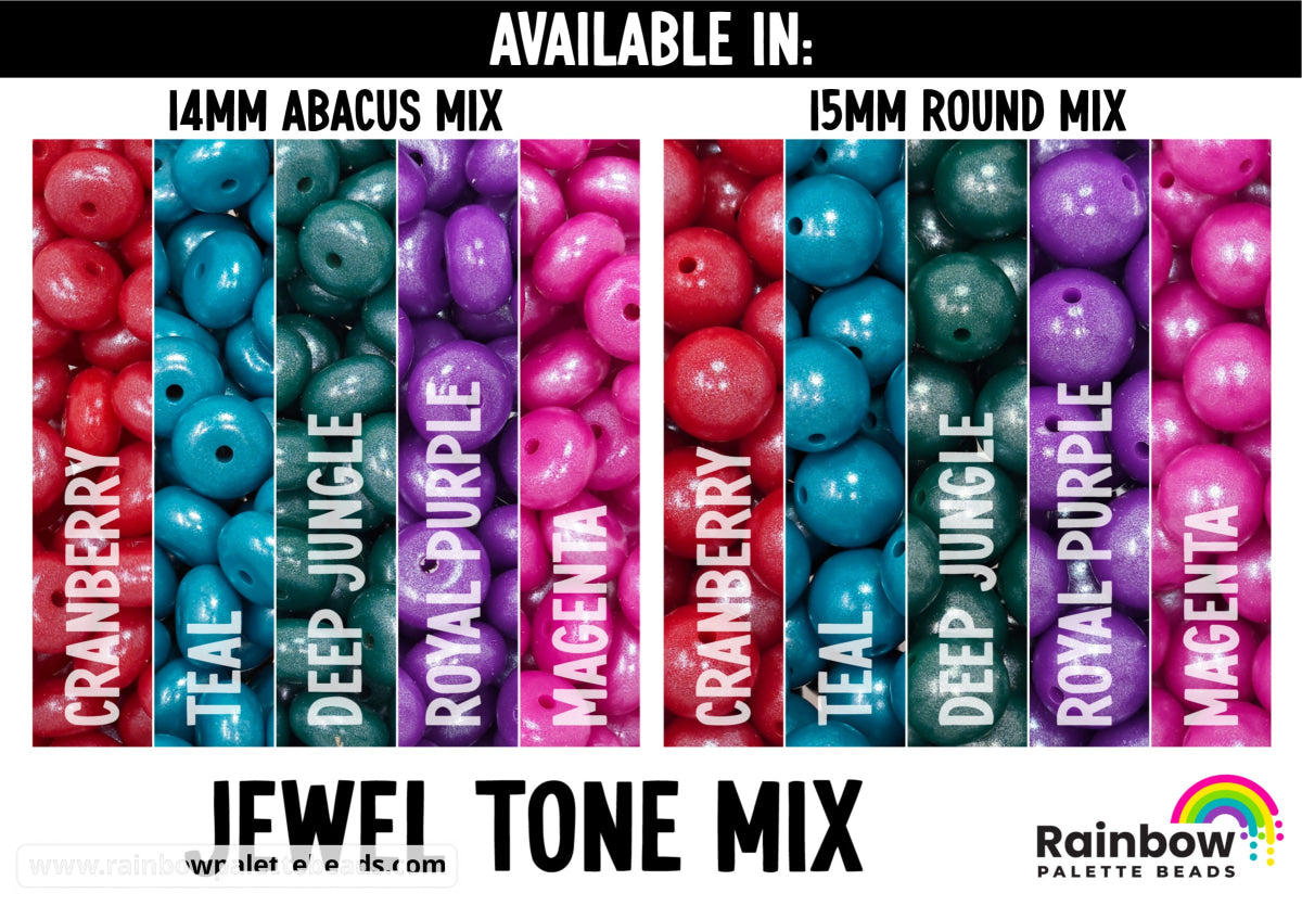 15mm Jewel Tone Shimmer Pearl Silicone Bead Mix (25 beads)