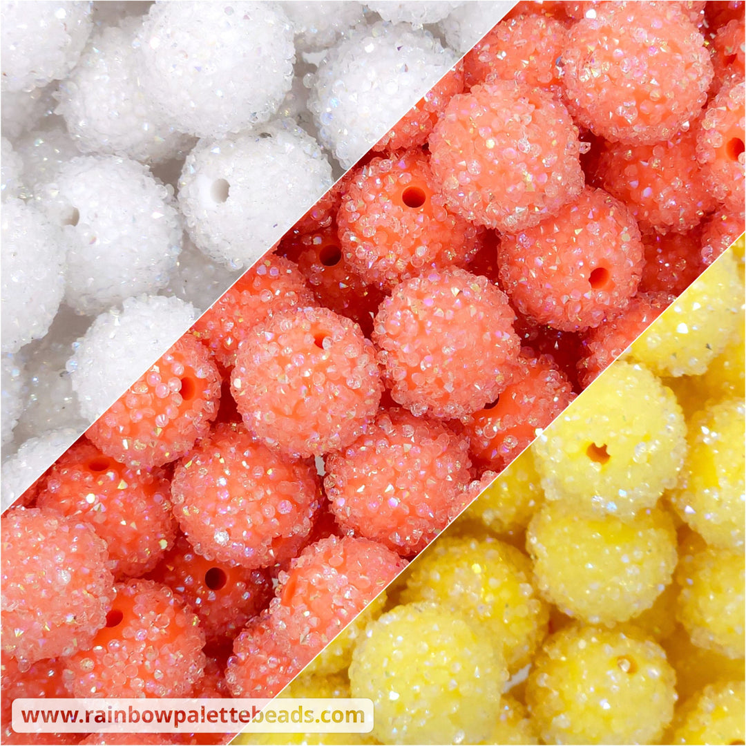 Price is for a bag of 30 beads containing 10 of each color: white, orange, yellow