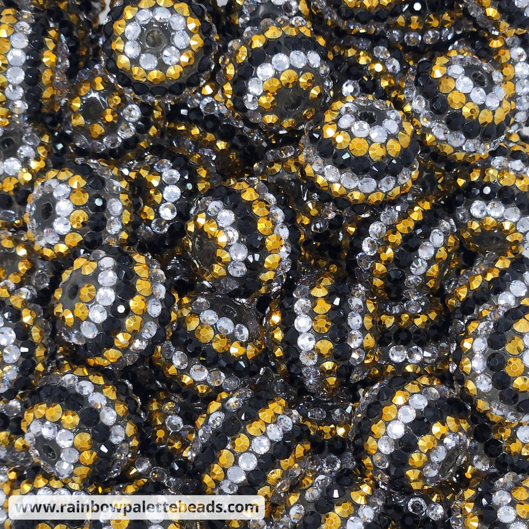 20mm Gold/Black/Silver Stripe Rhinestone Beads