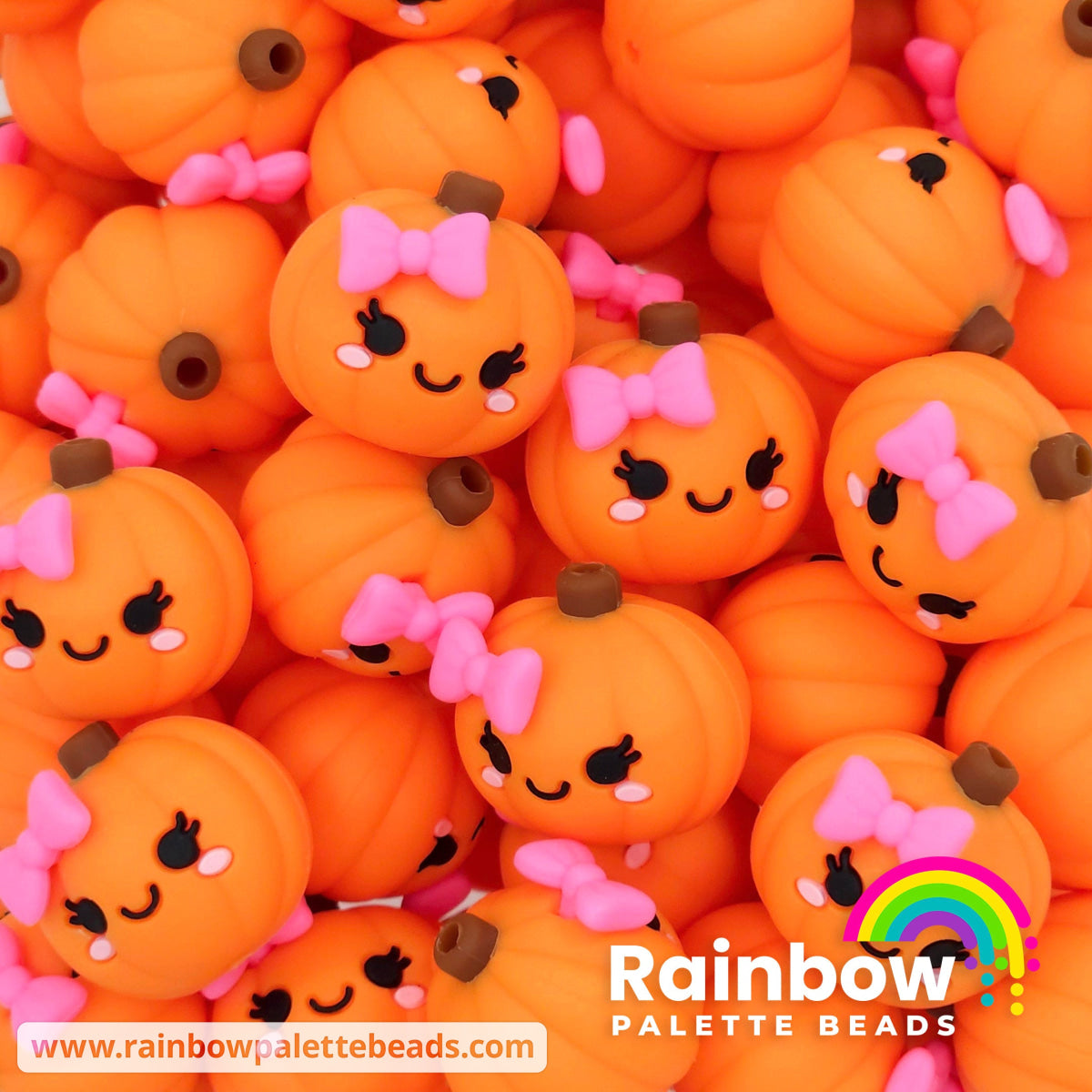 3D Cute Pumpkin with Bow Exclusive Silicone Focal Beads Pink Beads