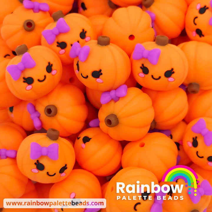 3D Cute Pumpkin with Bow Exclusive Silicone Focal Beads
